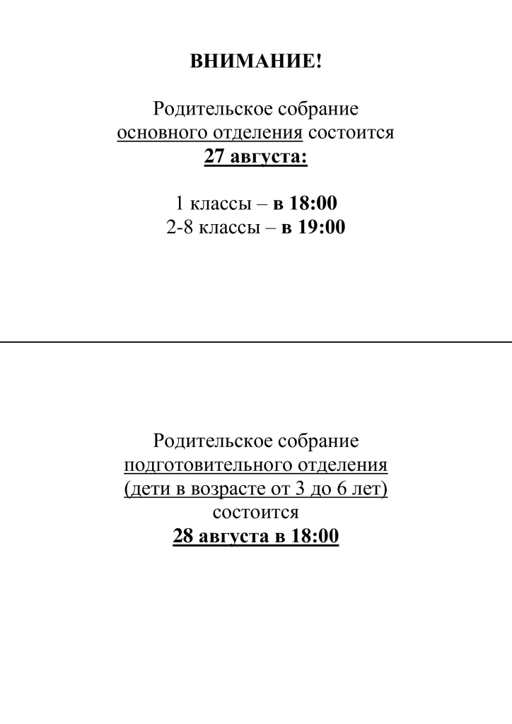 Уважаемые родители будущих первоклассников! Ждём вас на родительском собрании в конце августа. Дата и время проведения собрания будут опубликованы позже.